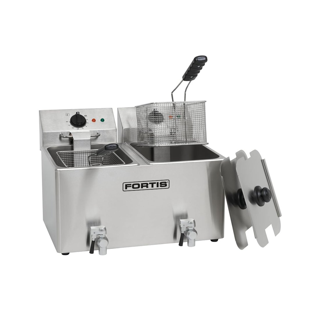 Нова генерација Fortis® професионални фритези – каде иновативната технологија се среќава со практичноста. Изработени од инокс за долг век на траење, со ултрабрзи грејачи и максимална безбедност при работа. Совршен избор за фаст фуд и кетеринг.