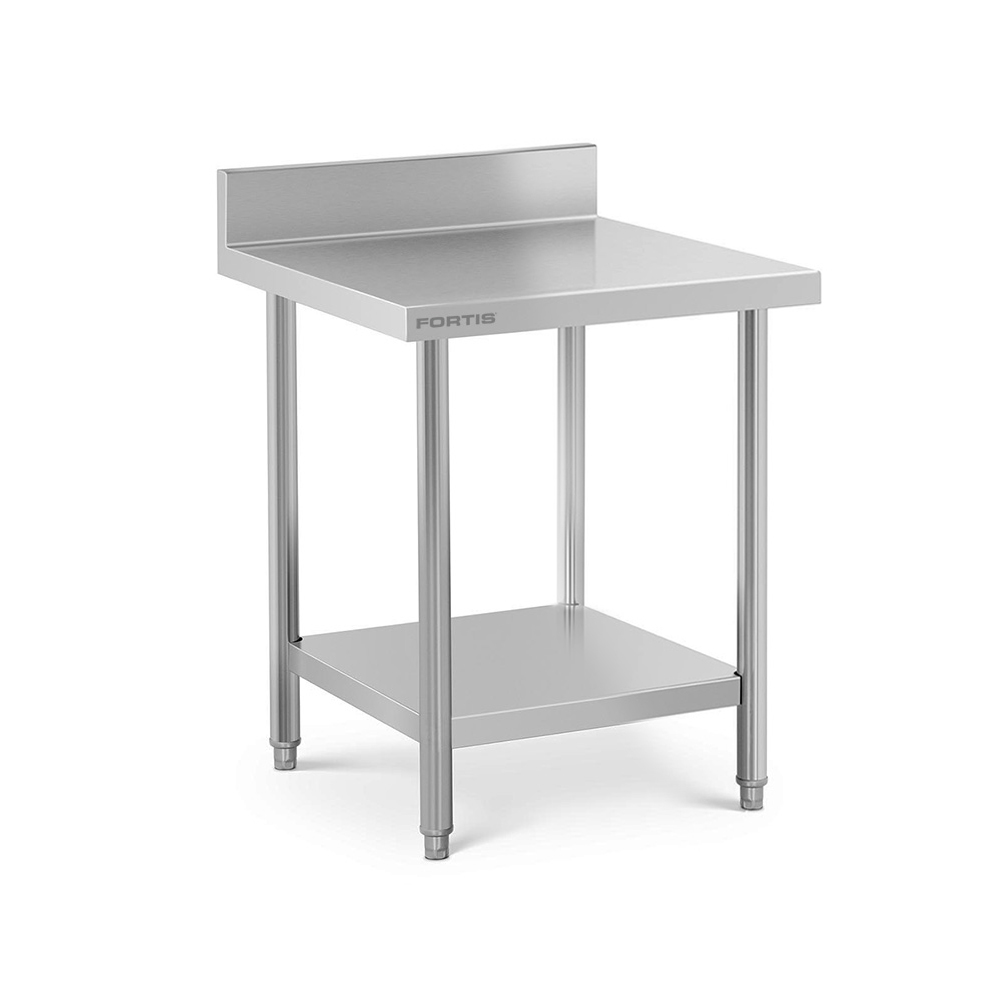 Fortis® работнa масa со цокла од висока класа е изработенa од специјален немагнетен инокс тип 18/10 (EN 1.4301 / AISI 304) засиленa со јадро од квалитетен PWD. Наменети за прехранбената индустрија – компатибилнa со HACCP системот. Инокс ногарки и папучи со прецизна нивелација.